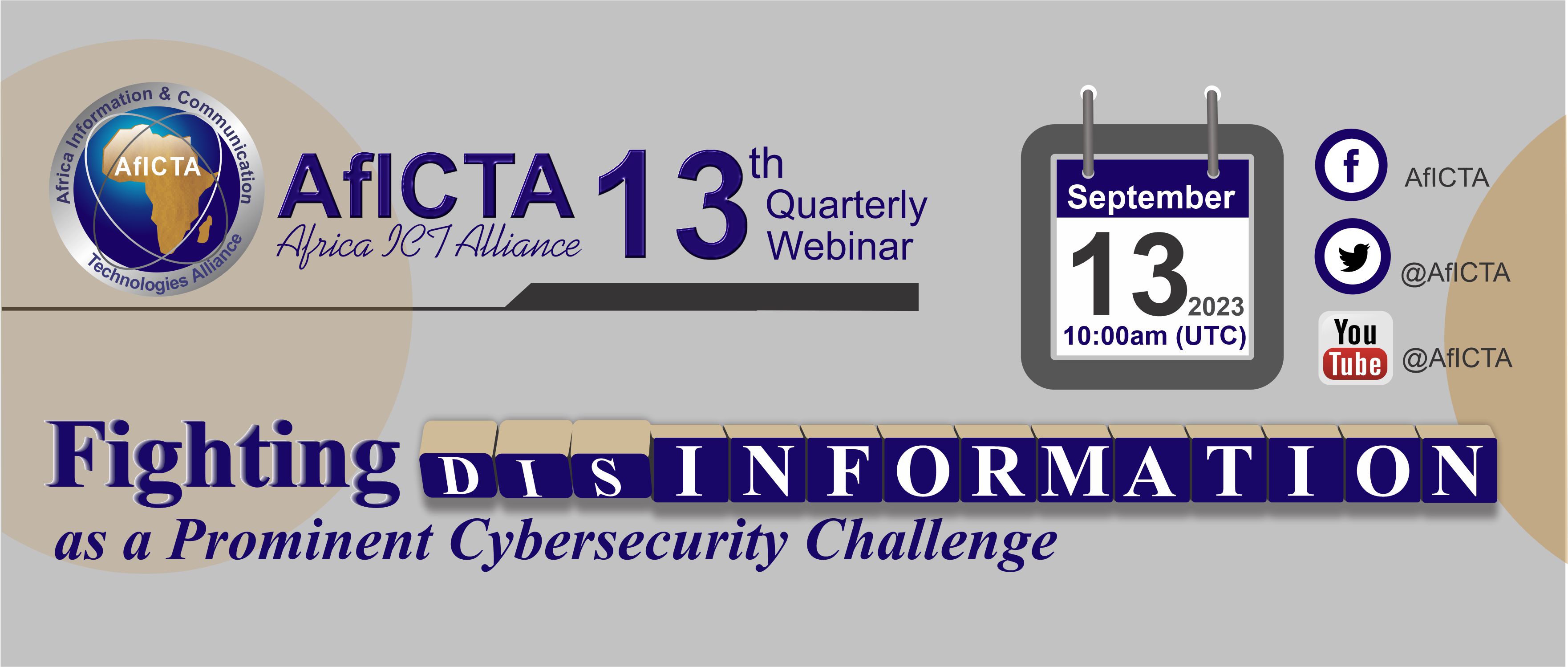 The 13th edition of the Quarterly eConference of Africa ICT Alliance - AfICTA, is being hosted by AfICTA Southern Africa Stakeholders in collaboration with the Institute of IT Professionals, South Africa - IITPSA and the session would examine the theme "Fighting Disinformation as a Prominent Cybersecurity Challenge", with the belief that addressing the issue of disinformation requires a multi-faceted approach which involves technology, media literacy efforts, policy interventions, and individual critical thinking skills. Fact-checking, enhancing digital media literacy, promoting responsible journalism, and fostering transparency from online platforms are all important steps in combating the spread of disinformation.