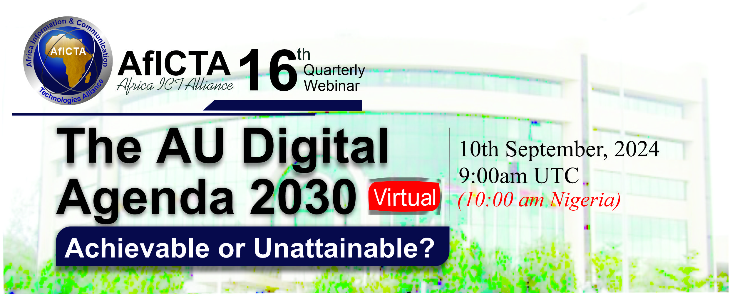 The 16th AfICTA eConference is being organized by the West African region purposely to engage stakeholders from across Africa and beyond in a robust discussion on the AU Digital Agenda 2030, examining its feasibility and identifying the practical steps needed to achieve its objectives. This session will bring together industry experts, policymakers, innovators, and thought leaders to evaluate the state of digital transformation across Africa and assess whether the agenda's aspirations are realistic or unattainable given the current circumstances.